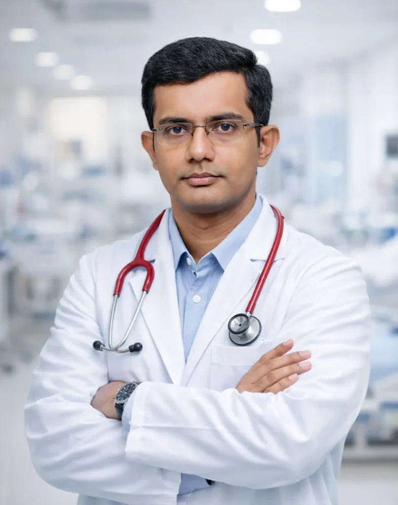 - MBBS, MD in Medicine, DNB in Cardiology, FESC, FACC